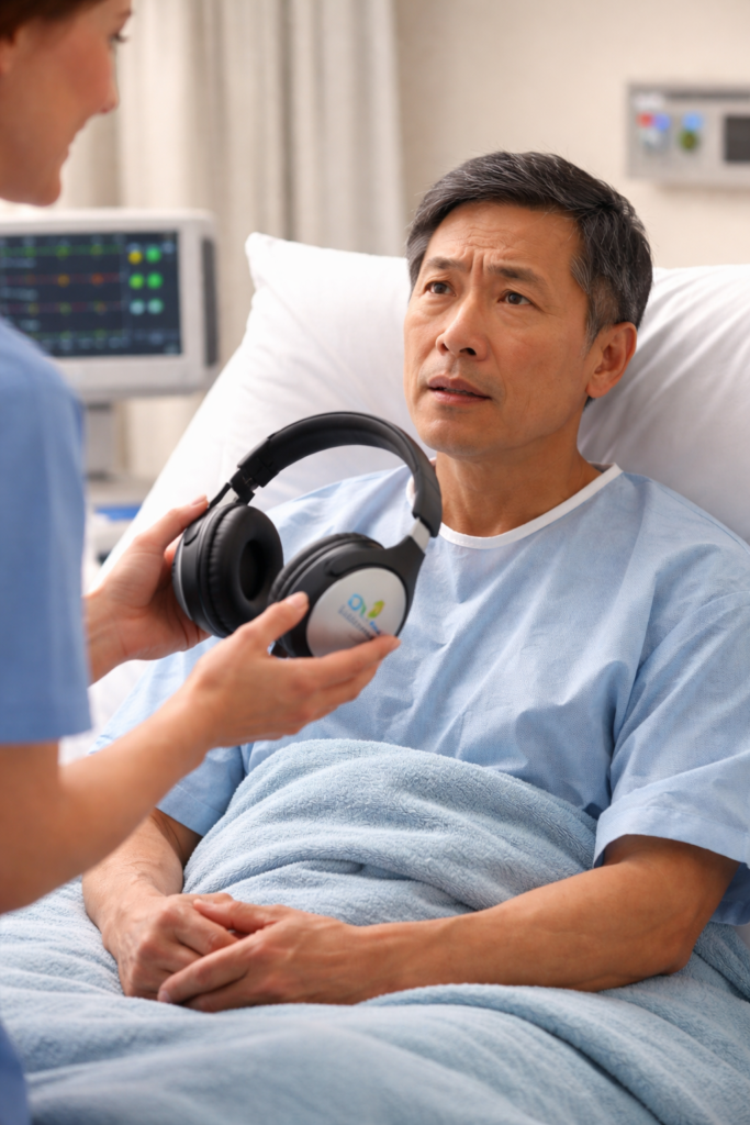 Mayo Clinic in Rochester, MN was my first hospital to use the headphones in their post-cardiac unit and they reported great results! Nurses reported that the patients loved the music and their vital signs stabilized faster and they required less anxiety and pain medication.