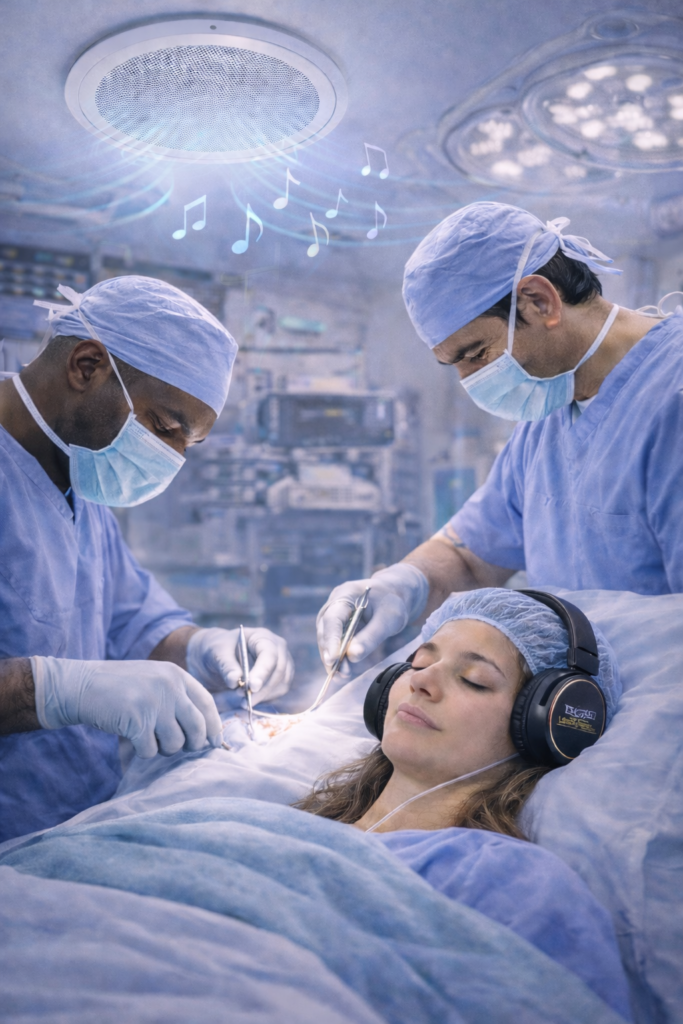 As alway, the headphones are placed on the patient’s head during the preoperative period, after the patient has changed into the surgical gown and had the IV placed. I have seen this happen many, many times and as soon as headphones go on, the patient closes their eyes and exhales a huge sigh of relief, as the soothing therapeutic music washes over them.